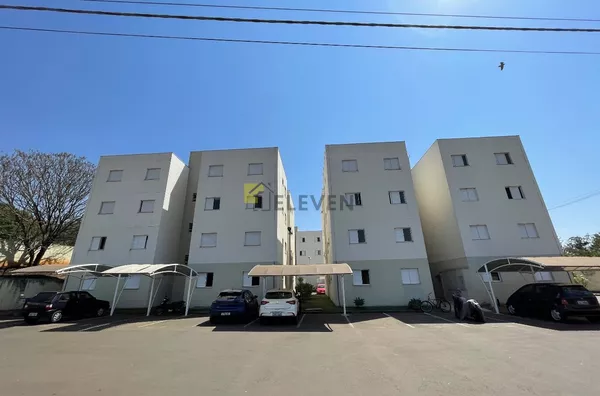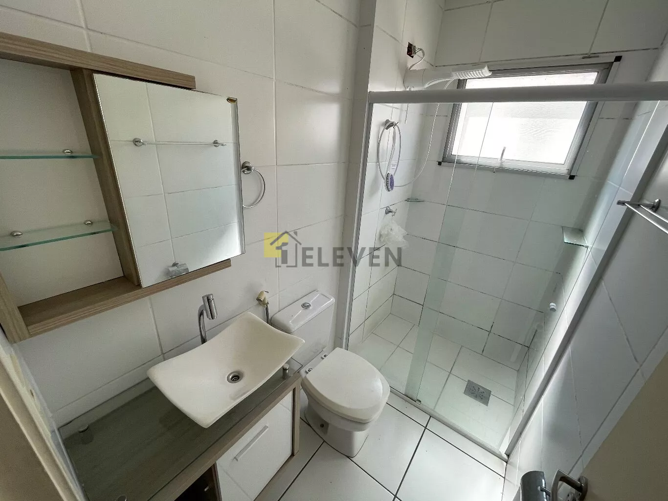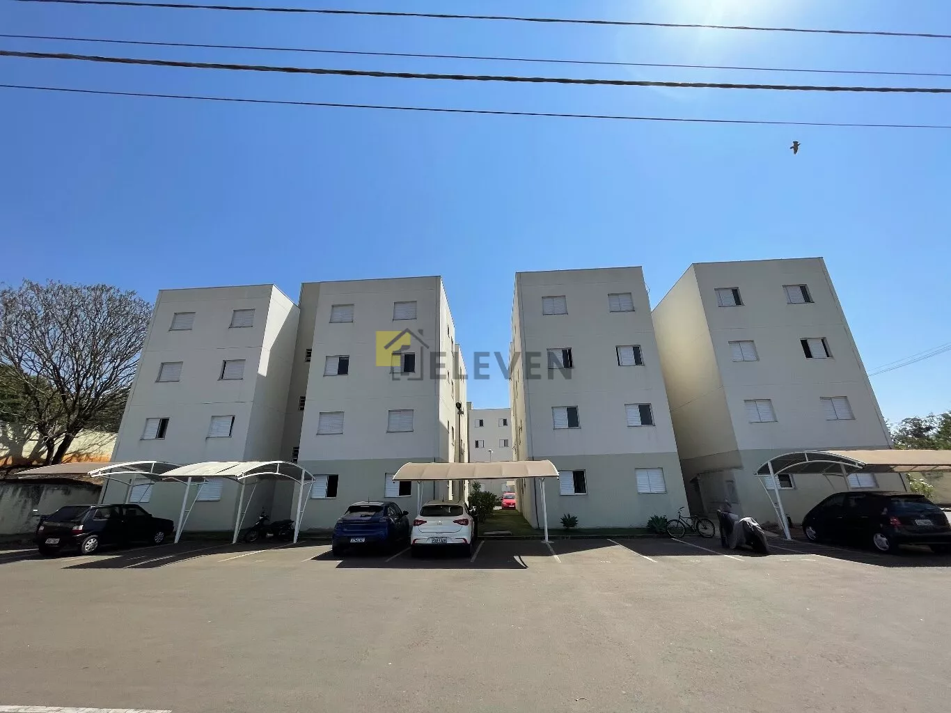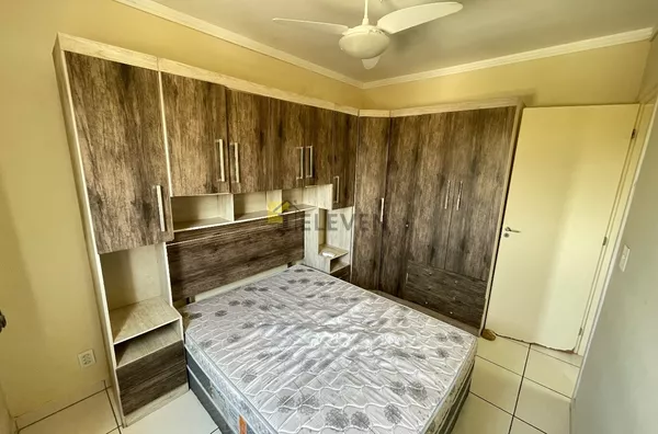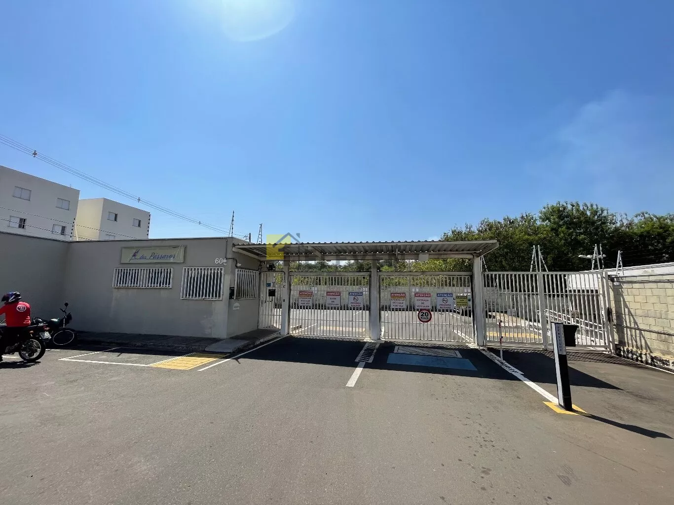 🛌 2 dormitórios, ambos com armários e um com cama🛋️ sala com sofá, painel e mesa🍽 cozinha com armários🧺 lavanderia🚽 wc social🚗 vaga de garagem