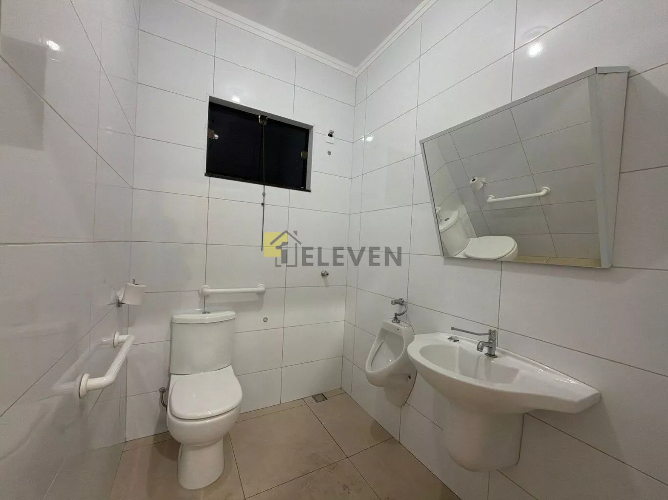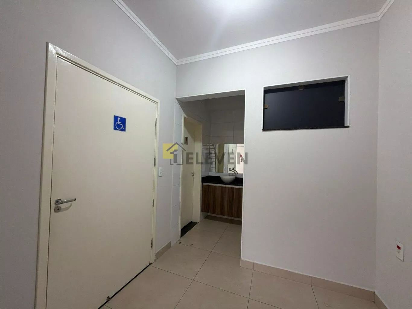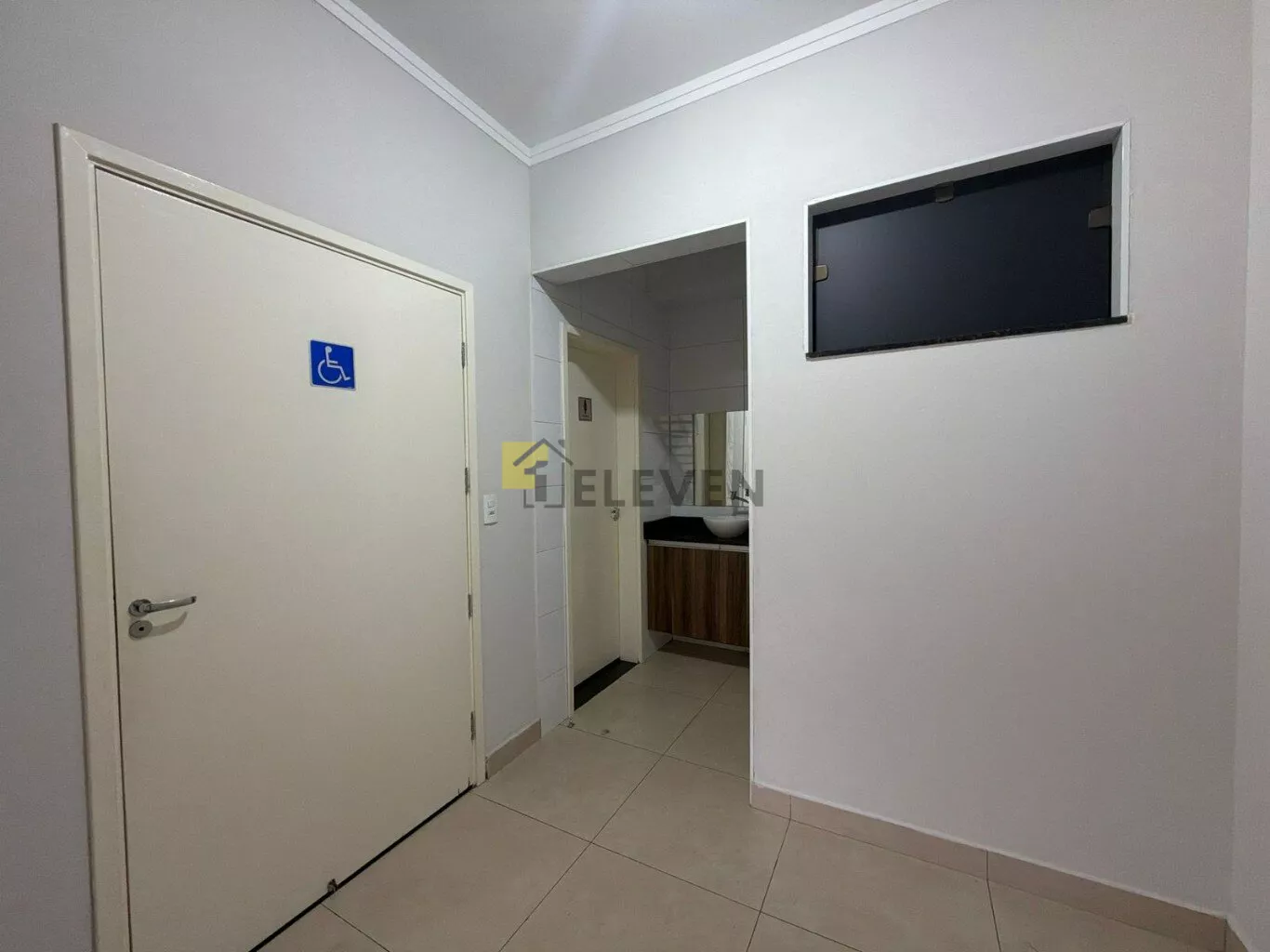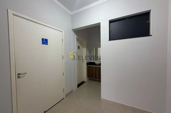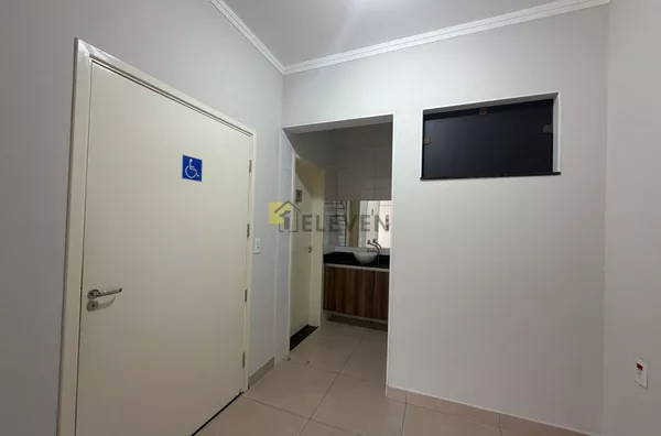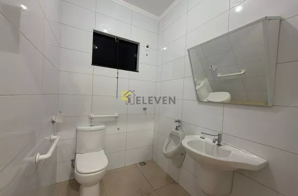 Dispõe de três banheiros independentes (feminino, masculino e acessível para PCD), garantindo praticidade e acessibilidade para clientes e colaboradores.