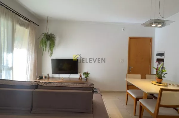 A sala é integrada, criando um ambiente amplo e arejado, perfeito para receber amigos e familiares.